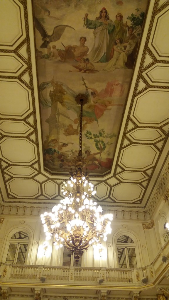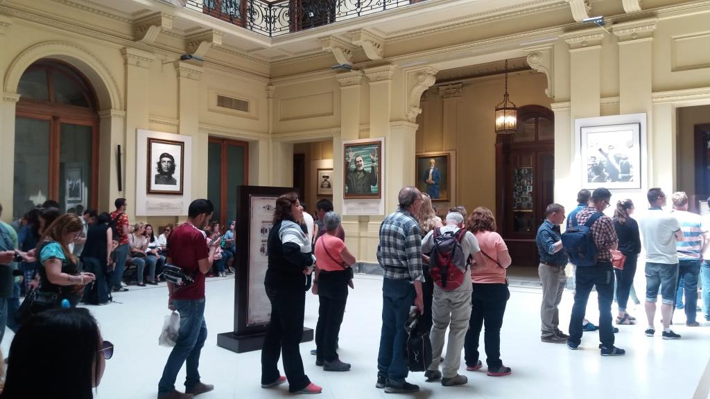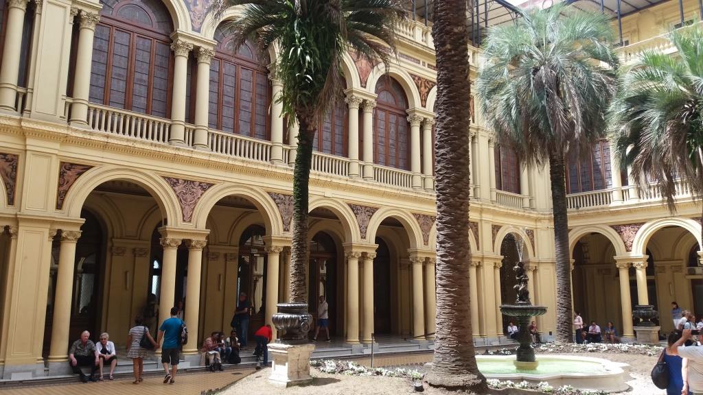 در گوشه ای از محوطه صفی کوتاه برای بازدید از طبقه دوم و دفتر کار اصلی رئیس جمهور تشکیل شده بود. نوبت ما که شد خانم متصدی پیشنهاد کرد که برای تور ساعت 5 عصر که به زبون انگلیسی است ثبت نام کنیم اما بعد که یادمون اومد اون ساعت جلوی هتلمون برنامه ای ویژه برگزار می شه گفتیم نه لطفا همون ساعت 3 به زبون اسپانیایی رو می خوایم و این شد که به صورت رایگان ژتون مربوطه رو دریافت کردیم.