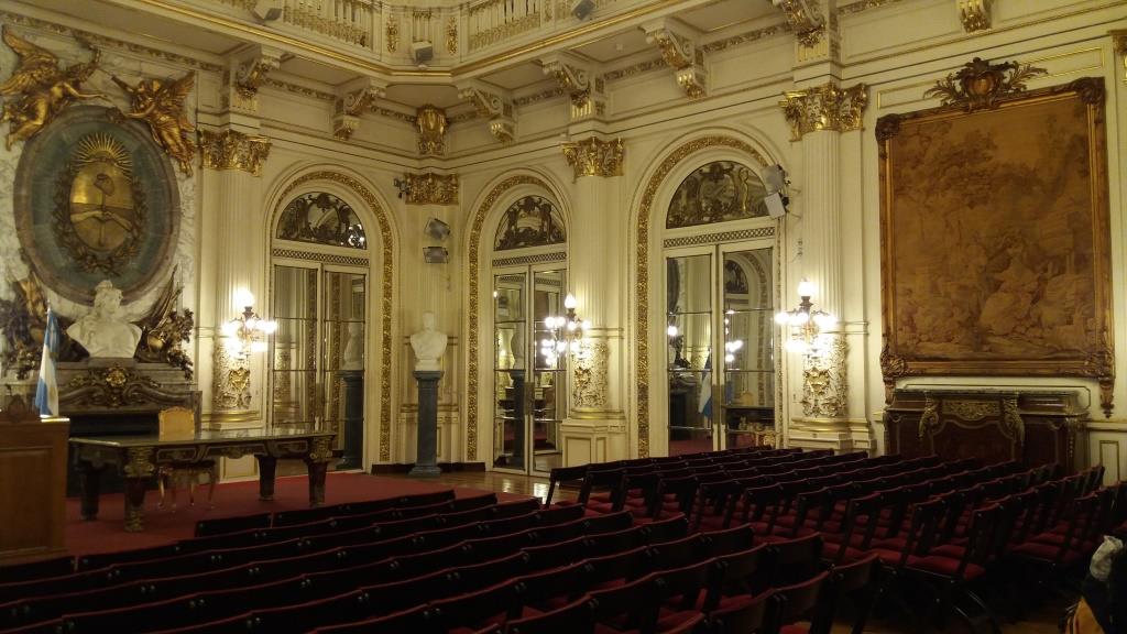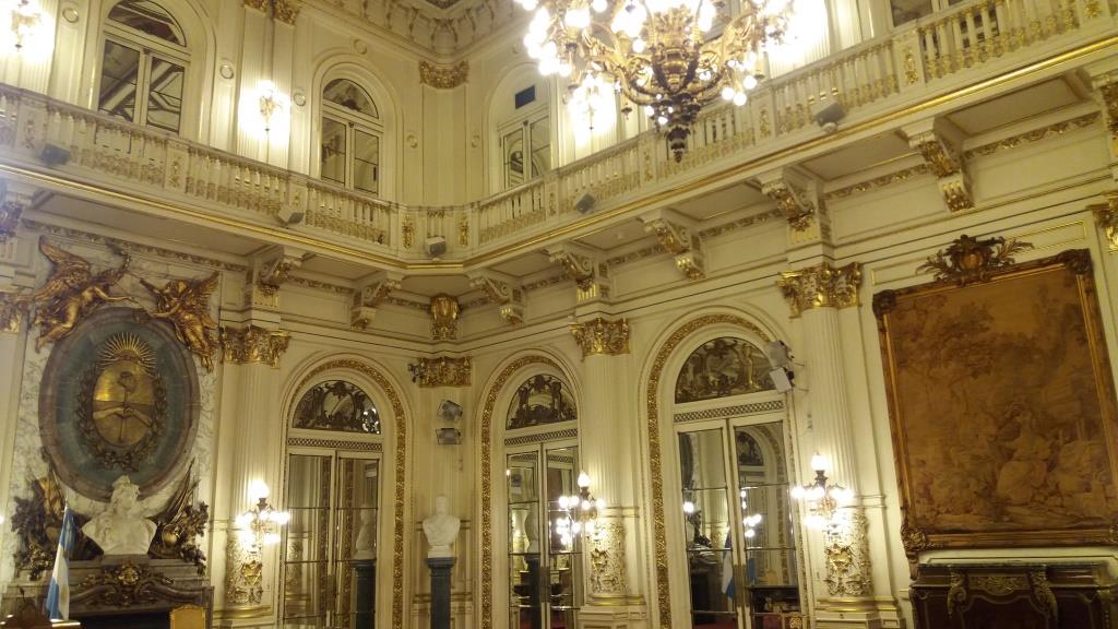 برخلاف انتظار به هیچ وجه از تزئینات و زرق و برق مرسوم کاخ ها خبری نیست. در طبقه همکف، ورودی سالن اصلی چندان بزرگ نیست! هر گوشه از دیوار تابلویی از بزرگان تاریخ آرژانتین یا آمریکای جنوبی به چشم می خورد. از استقلال طلبان دوآتیشه ای چون چگوآرا تا اِوا پرون (اویتا) محبوب آرژانتینی ها و حتی کسی مثل هوگو چاوز!