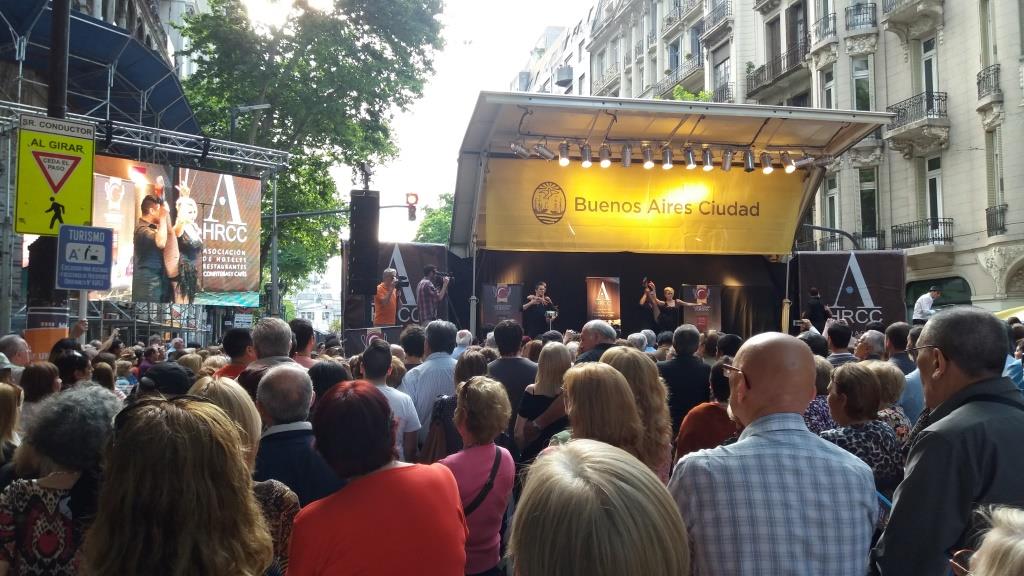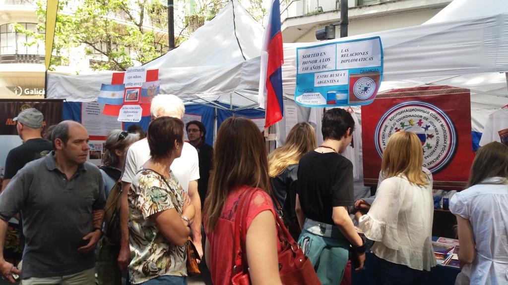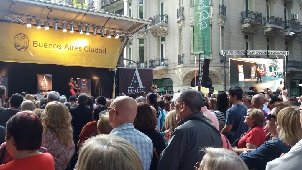 با خروج از کاخ در امتداد بلوار دمایو پیش می ریم. این بار جمعیتی بزرگ بلوار رو به تسخیر درآوردند و سنی بزرگ در وسط خیابون نصب شده و برنامه های متنوعی رو پخش می کنه! جلوتر که می ریم متوجه می شیم انگار این برنامه برای تقویت دوستی دو کشور روسیه و آرژانتین برگزار شده! اونجور که گفته می شه این میدون همیشه پذیرای برنامه های مختلف این چنینی است.